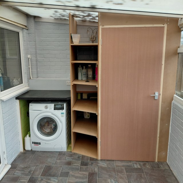 This shows a completed shelving unit which was built into a chimney breast in aVictorian terraced property. The object was to create a copy from a original thatwas taken out by a previous owner, using an old photo.