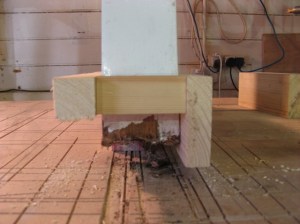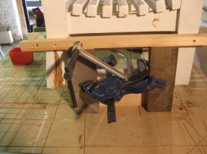 This much cherished Victorian bench has been part of the family for over a century, with photographs of grandfather sat on it as a young man. The rot in the feet of each leg being the result of many years standing on damp ground and ‘old age’. The solution was to sit the bench onto my work bench propped up and the legs cut back. Oak shoes were then glued on and Oak pegs introduced to make sure that the shoes hold fast for years to come.